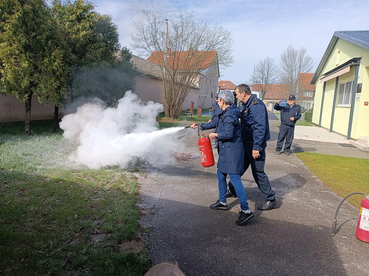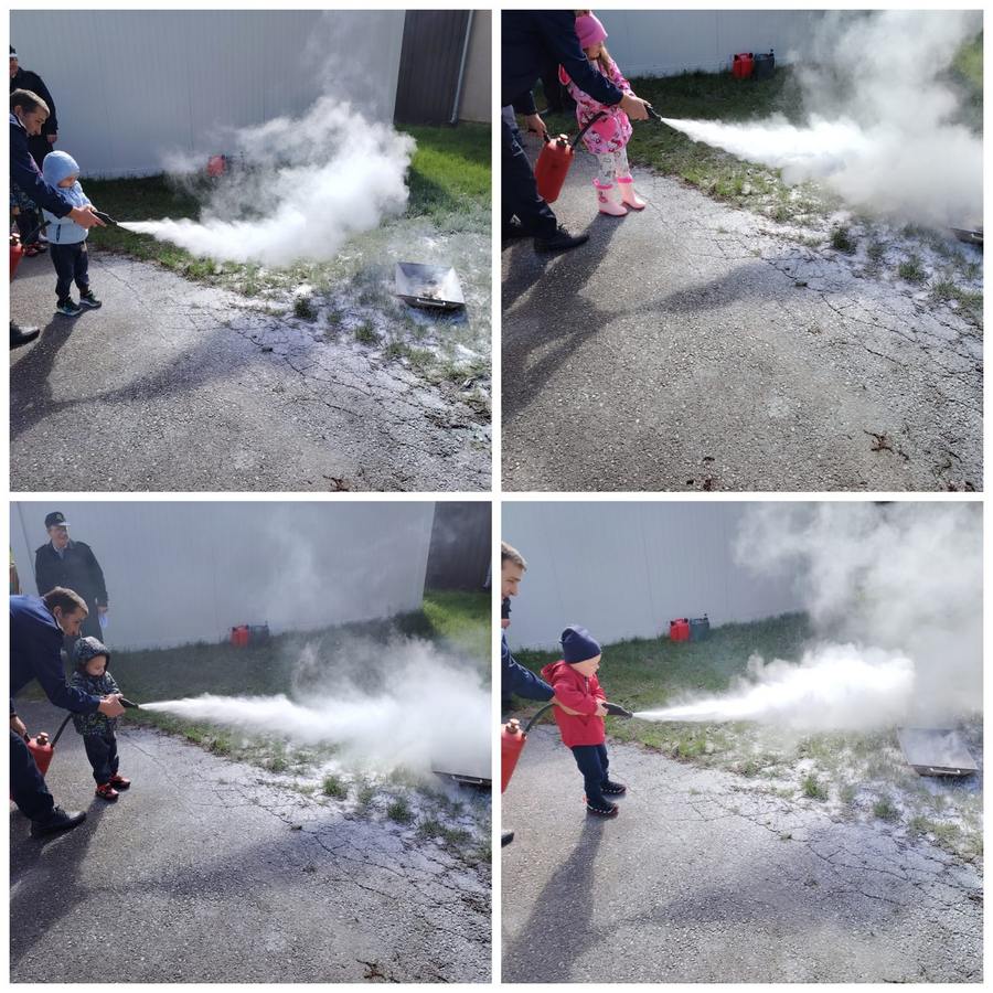 Po završetku vježbe djeca i odrasli uz pomoć vatrogasaca izveli su gašenje požara pomoću ručnih vatrogasnih aparata što je djeci bilo vrlo uzbudljivo.