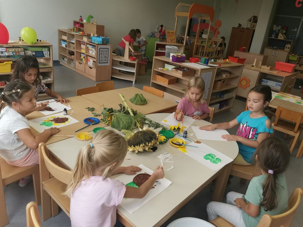 U našem vrtiću veselo smo i zajednički dočekali prvi dan jeseni! Skupine Kockice, Pčelice, Točkice i Mravići kroz igru i kreativne zadatke otkrivale su ljepote ovog godišnjeg doba. Djeca su slikala bundeve, istraživala dijelove suncokreta, izrađivala kolaž u obliku lista te oslikavala listove temperama u raznim bojama.