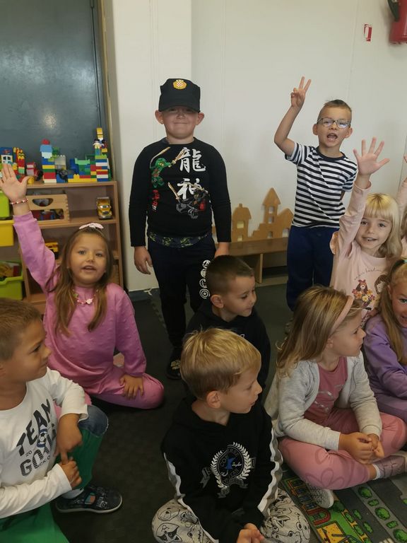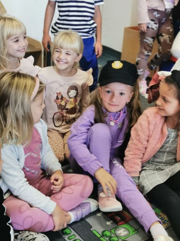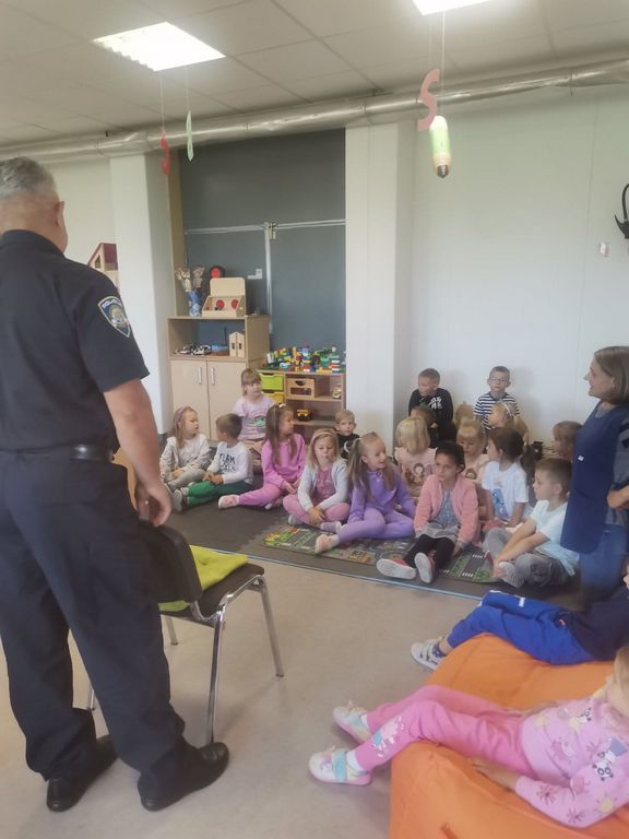Skupinu Točkice posjetio je tata djevojčice iz skupine koji je policijski službenik. Opisao je svoje zanimanje, odgovarao na njihova pitanja, pokazao dio opreme za rad.