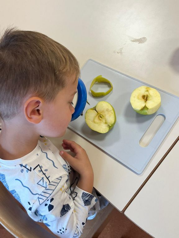 U našem vrtiću (matičnom i područnom), jabuka je dio prehrane, a kroz razne aktivnosti koje uključuju učenje o jabuci, njezinoj važnosti za zdravlje te raznovrsne aktivnosti poput slikanja,istraživačkih i tjelesnih aktivnosti „Kreći se kao jabuka“, rezanja, guljenja i degustacije i mi smo obilježili dan “kraljice voća”.