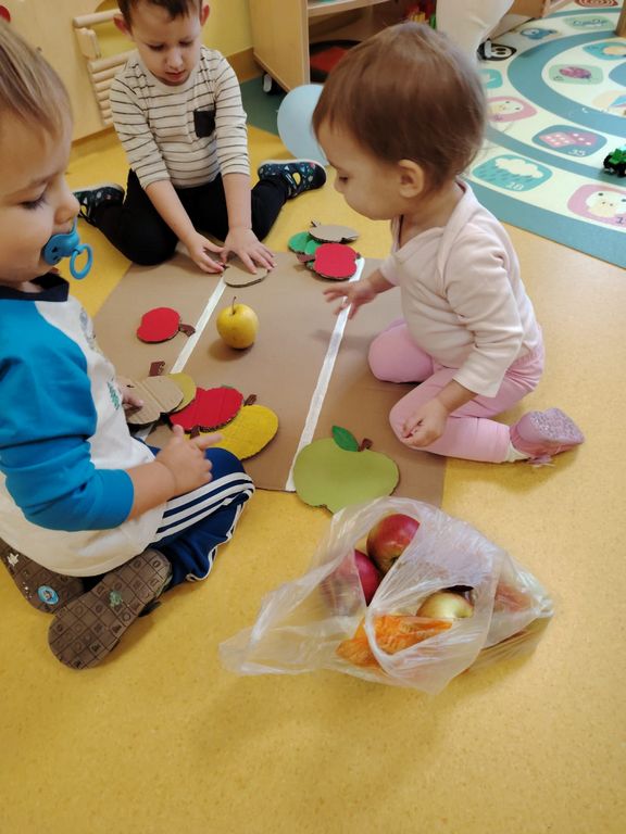 U jasličkoj skupini istraživali su jabuke dodirom, okusom, mirisom, radili otiske, sortirali jabuke prema veličini i boji, pjevali pjesmice, čitali priče… Bilo nam je jako lijepo,zanimljivo i poučno.