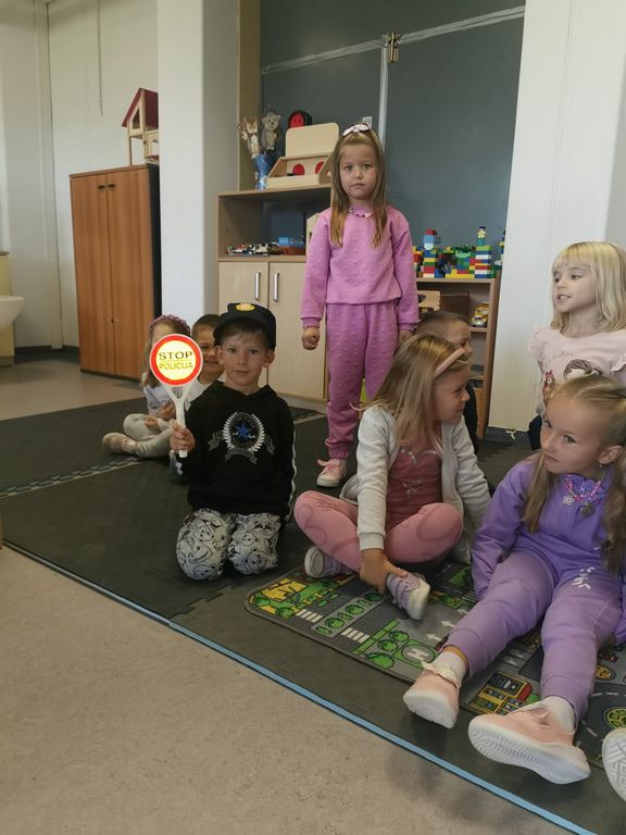 Skupinu Točkice posjetio je tata djevojčice iz skupine koji je policijski službenik. Opisao je svoje zanimanje, odgovarao na njihova pitanja, pokazao dio opreme za rad.
