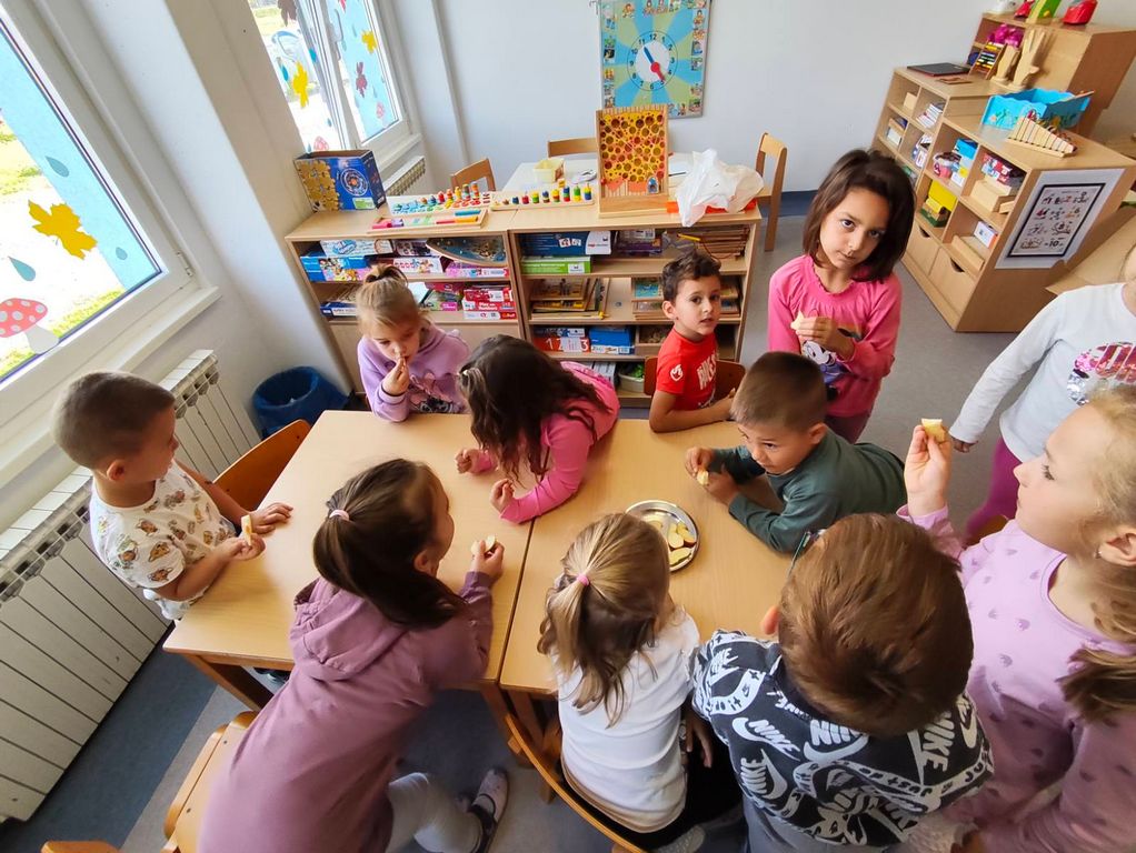 U našem vrtiću (matičnom i područnom), jabuka je dio prehrane, a kroz razne aktivnosti koje uključuju učenje o jabuci, njezinoj važnosti za zdravlje te raznovrsne aktivnosti poput slikanja,istraživačkih i tjelesnih aktivnosti „Kreći se kao jabuka“, rezanja, guljenja i degustacije i mi smo obilježili dan “kraljice voća”.