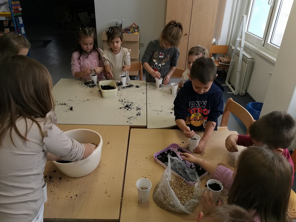 Tako su „Točkice“ i „Mravići“ posijale pšenicu, svatko u svoju posudicu.